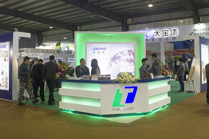 大寶國(guó)際董事長(zhǎng)陳賀生先生(中間)與大寶化工總經(jīng)理陳春華先生、大寶化工工程部劉昌屏經(jīng)理(右一)于大寶漆展位合影